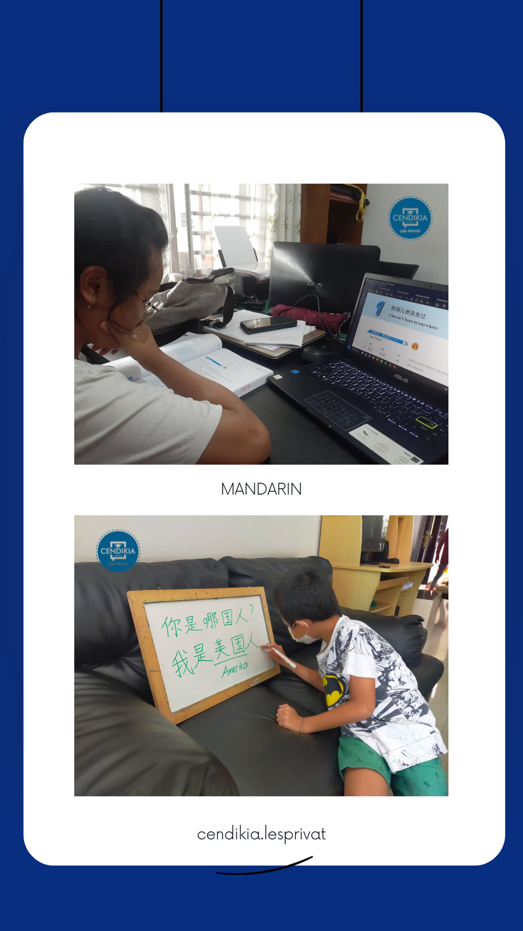 “Saya ambil paket les bahasa mandarin di Cendikia untuk persiapan mau ke luar negeri, sebulan aja tapi rasanya sudah cukup karena pengajarnya kompeten, sukses terus Cendikia”